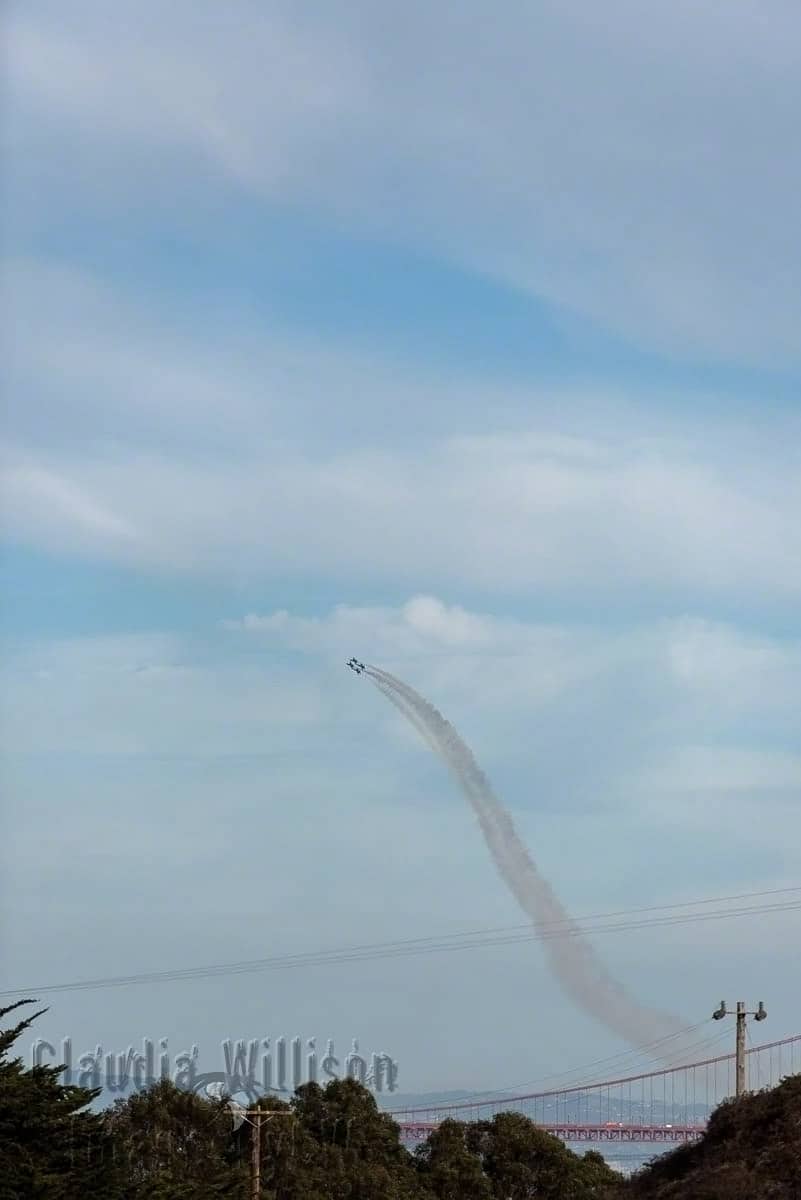 18 inches! Up in the sky at speeds of about 400 mph. Turned out that they were in town for the annual Fleet Week in San Francisco, which we missed by a few days. But we got the extra an viewing some of their training. And we got shocked, too. Because when David finally dragged me away and we drove slowly over the Golden Gate in bumper-to-bumper rush hour traffic they were still practicing, but I had lost them out of sight. Until I heard them, looked up and saw it / heard it thundering right over our heads just above the bridge. I swear my heart lost at least a couple of beats. It was so close. So loud. So wow.