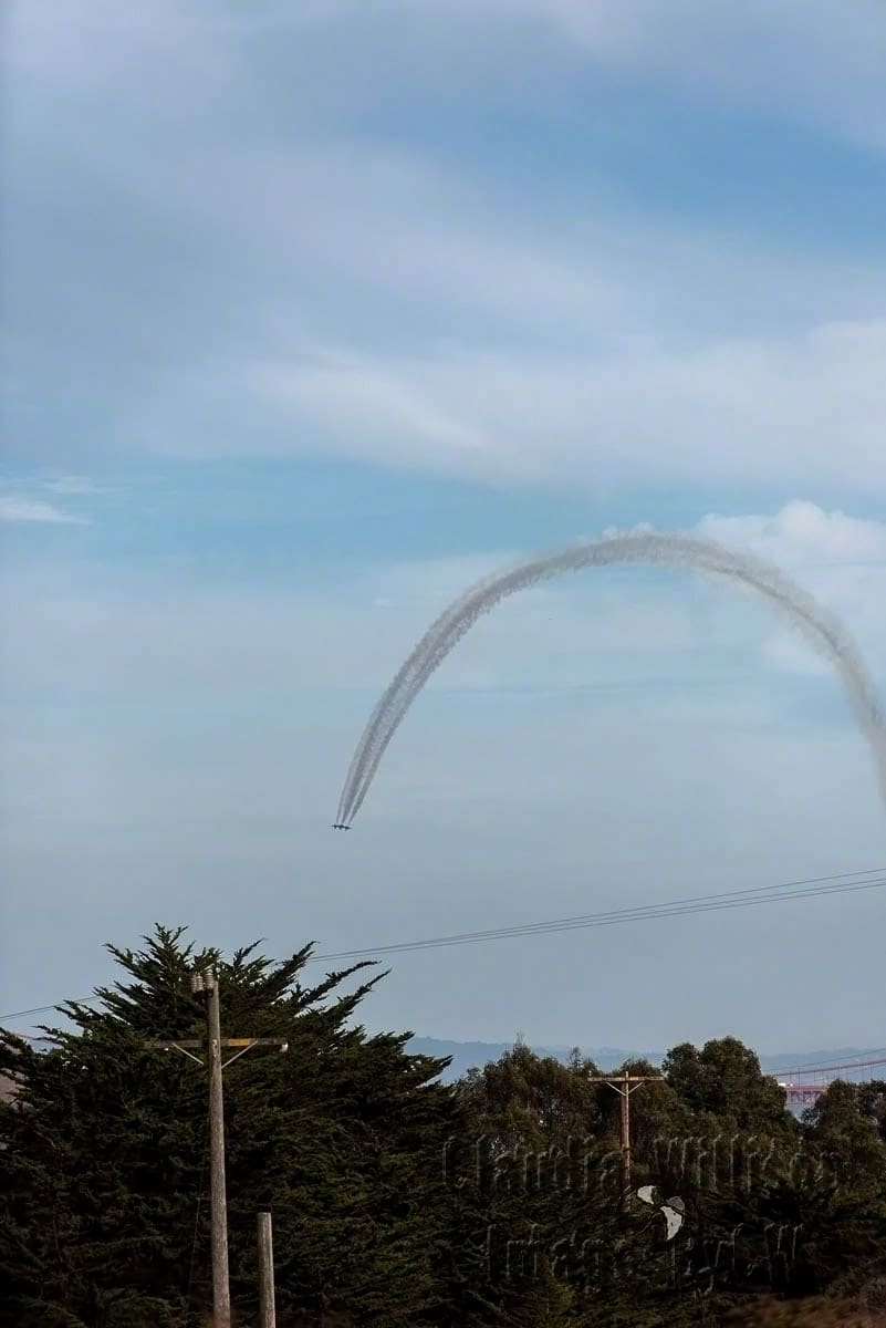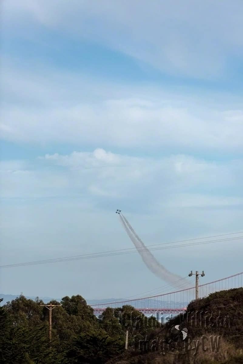 18 inches! Up in the sky at speeds of about 400 mph. Turned out that they were in town for the annual Fleet Week in San Francisco, which we missed by a few days. But we got the extra an viewing some of their training. And we got shocked, too. Because when David finally dragged me away and we drove slowly over the Golden Gate in bumper-to-bumper rush hour traffic they were still practicing, but I had lost them out of sight. Until I heard them, looked up and saw it / heard it thundering right over our heads just above the bridge. I swear my heart lost at least a couple of beats. It was so close. So loud. So wow.