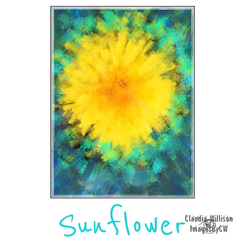 Claudia, the digi-art of the sunflower looks like a painting. I love the brilliant cheery yellow! It looks more enhanced than I would imagine a real sunflower appearing, but then again the way the background colors pop I think the whole effect is fabulous. It makes me happy to look at your photo-art on display. 😀
