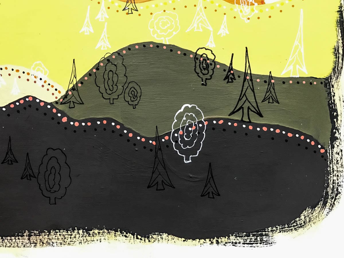 And for Paint Party Friday I am sharing with you a yellow(ish) acrylic painting, well, mixed media as I also used watercolors and gel pens. I meant to do a how-to video with this one, but… I stuffed up the files. So, what do I do? I am making another one. In blue! I will and then I have them in all three prime colors.Cheers,