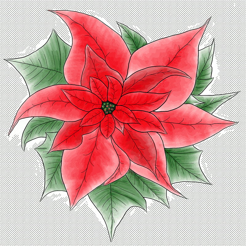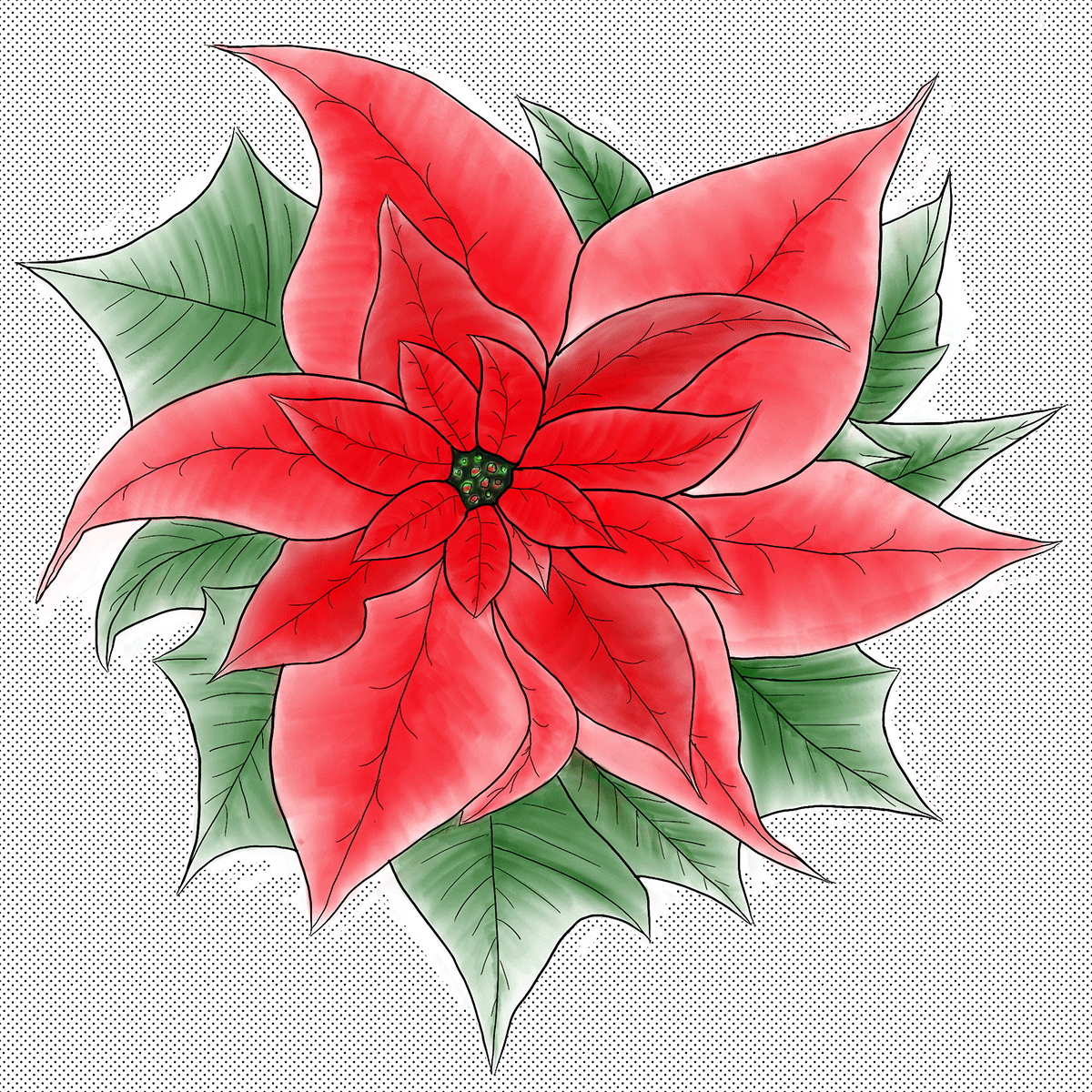 A pointsettia digital drawing with different backgrounds